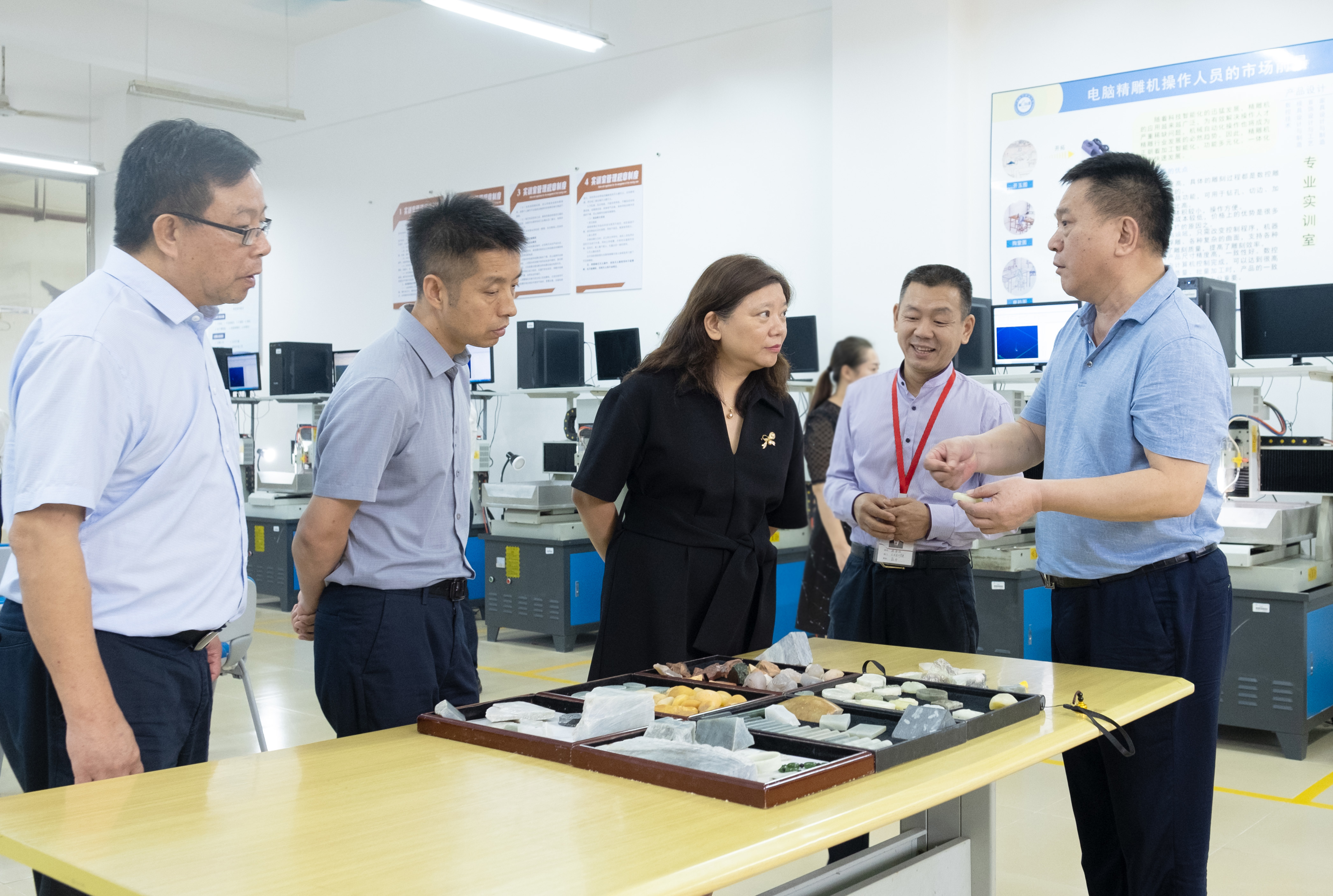 教育部教育质量评估中心主任范唯一行在艺术设计与文化传媒学院玉石精雕实训室参观交流