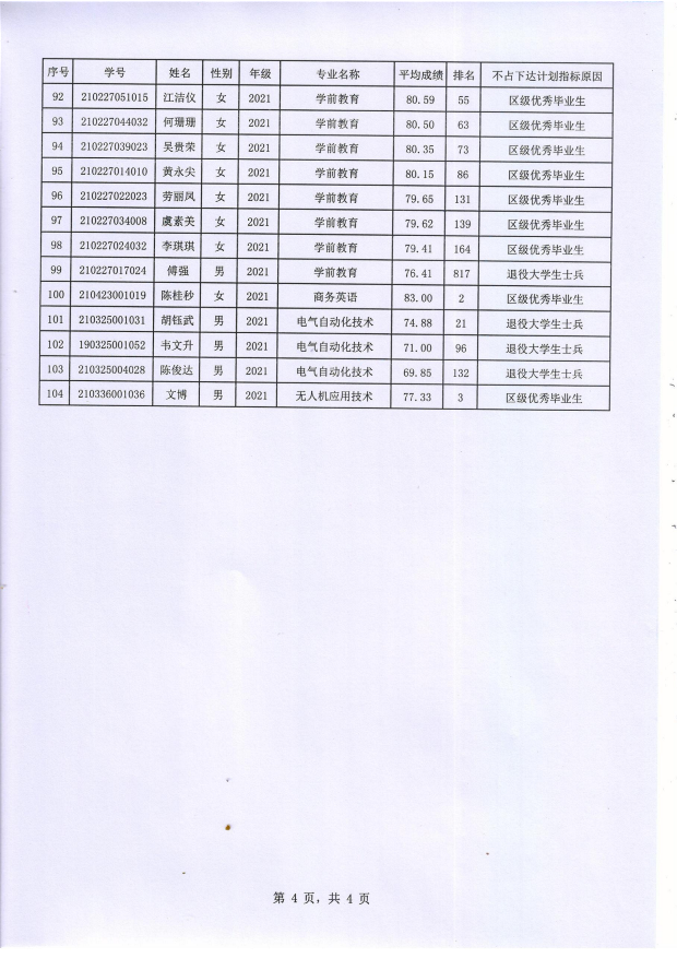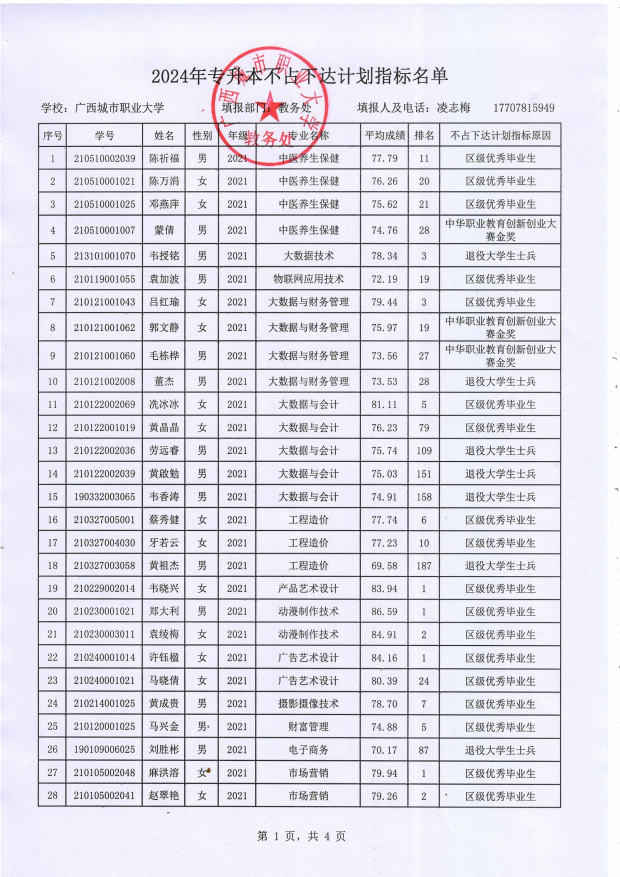 广西城市职大学2024年专升本不占下达计划指标名单公示
