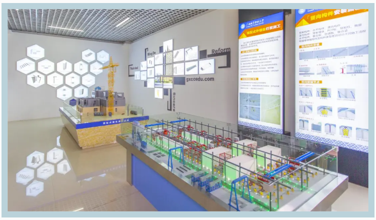 为了使学生全面掌握这些前沿技能,建筑工程学院在人才培养方案中特别增设了《装配式建筑施工》课程,并配备了装配式建筑实训室以及虚拟仿真实训设施,以满足教学观摩与实训的双重需求。