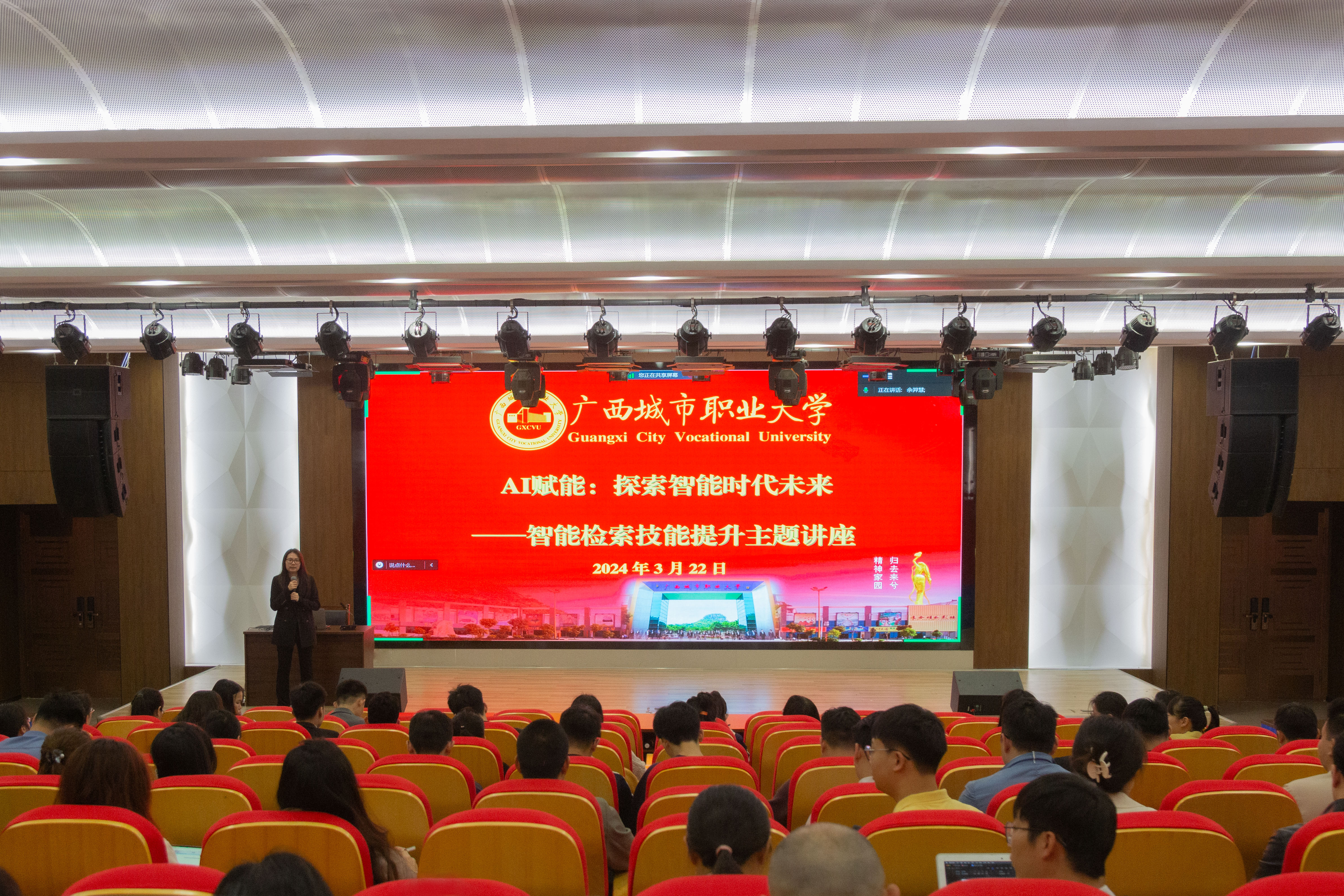 为了提升我校教师对人工智能ChatGPT技术的理解,掌握其在文献信息探索中的应用。我校于3月20至22日分别在崇左校区15号报告厅和空港校区阶梯三开展了智能检索专题讲座,深入解读AI技术及应用的专题讲座,会议室座无虚席,一场关于智能检索的专题讲座吸引力众多老师的关注。本次讲座由智能工程学院王振波、谢福熹、蓝嘉宾、廖艾四位主讲人共同呈现,他们深入浅出地讲解AI技术的相关知识,并详细探讨了AI技术在各个方面的应用。