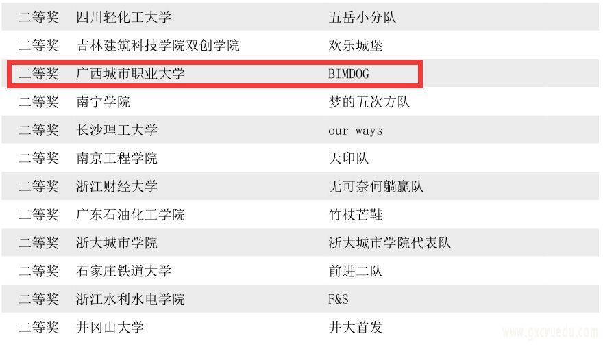 建筑工程学院经过选拔,最终陈川、赵镜全、张诗敏、王彧仁、谢布连五位同学们组成队伍参赛,蒙圣荣、覃智泽、韦向高、李克华、蒙胤明担任指导老师,经过一个多月的培训与准备,精心打磨参赛作品,在决赛中表现优秀,取得全国二等奖的好成绩。