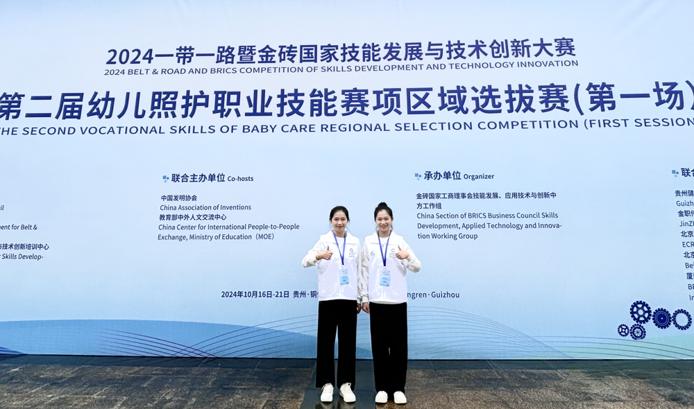 近日,2024年一带一路暨金砖国家技能发展与技术创新大赛再次传来喜讯,我校教育学院学子在幼儿照护职业技能赛项中,与来自广西、云南、贵州、海南四省的共31个参赛队伍同台竞技,其中包括广西医科大学、海南科技职业大学、贵阳康养职业大学、云南经济管理学院等高校团队,最终斩获1项三等奖国赛荣誉。
